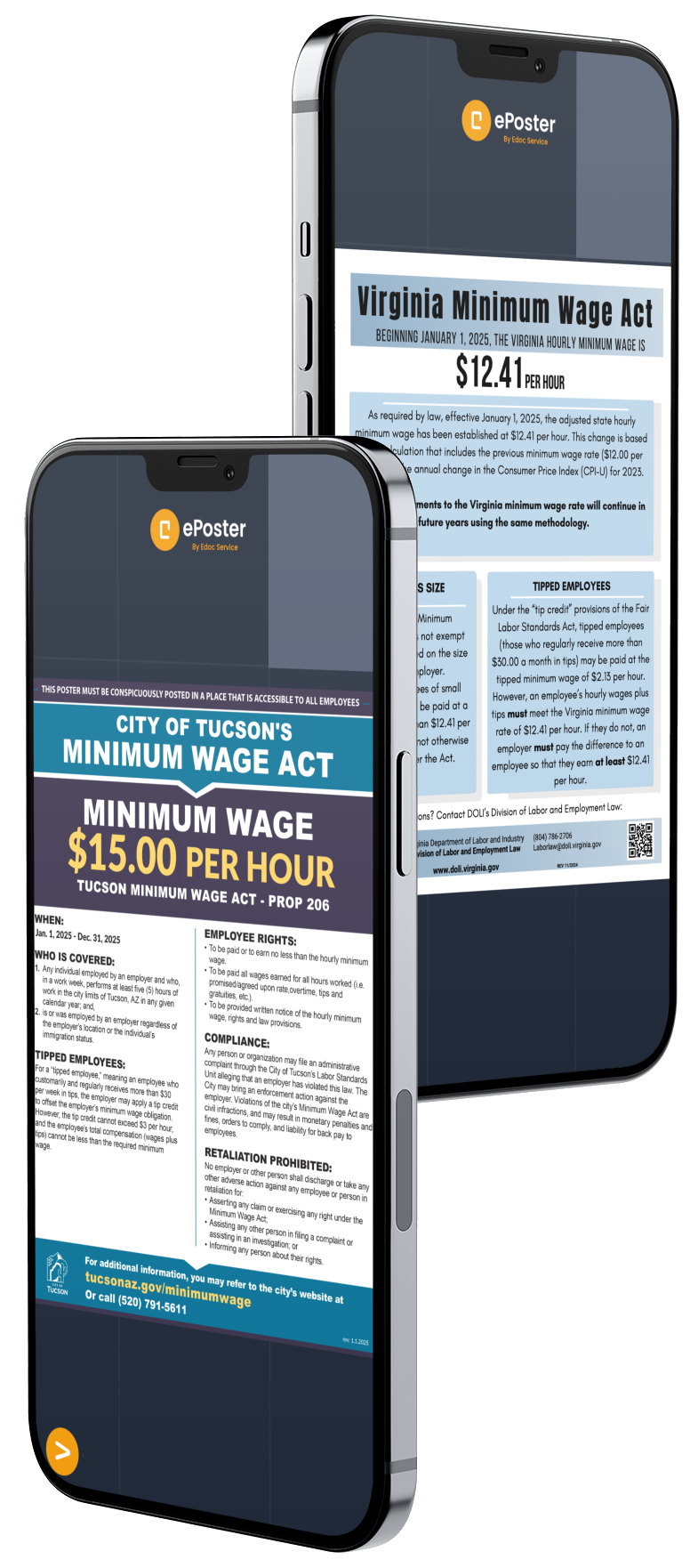 When a new labor law poster is issued, we automatically update the digital posters on our platform, ensuring you remain compliant without any additional effort on your part. We send out quarterly reminders to ensure you are aware of such changes to the posters.